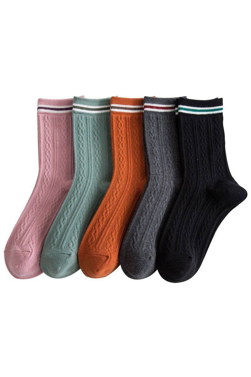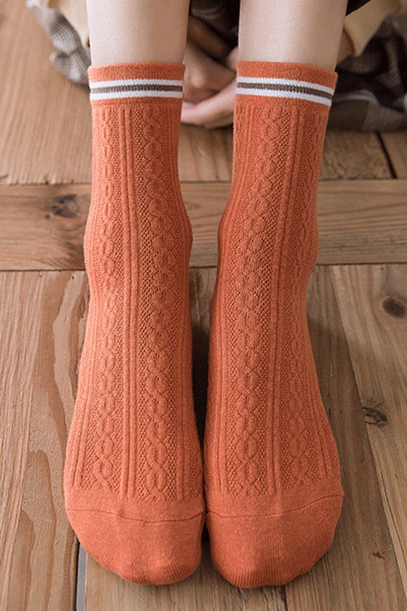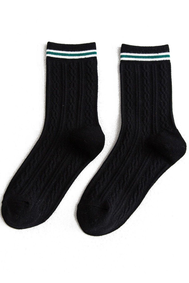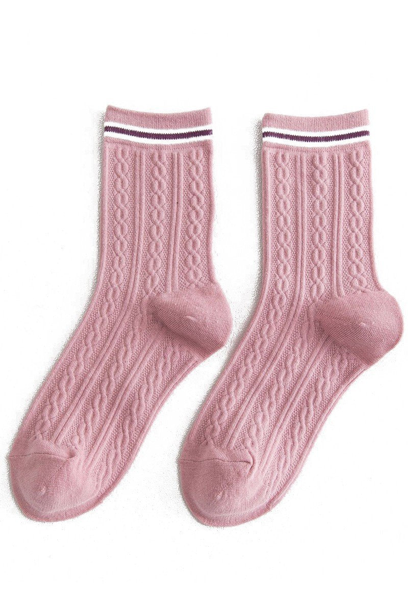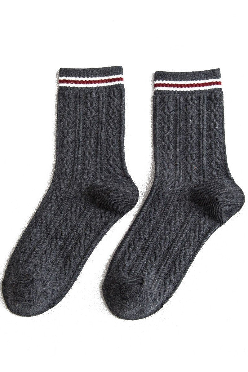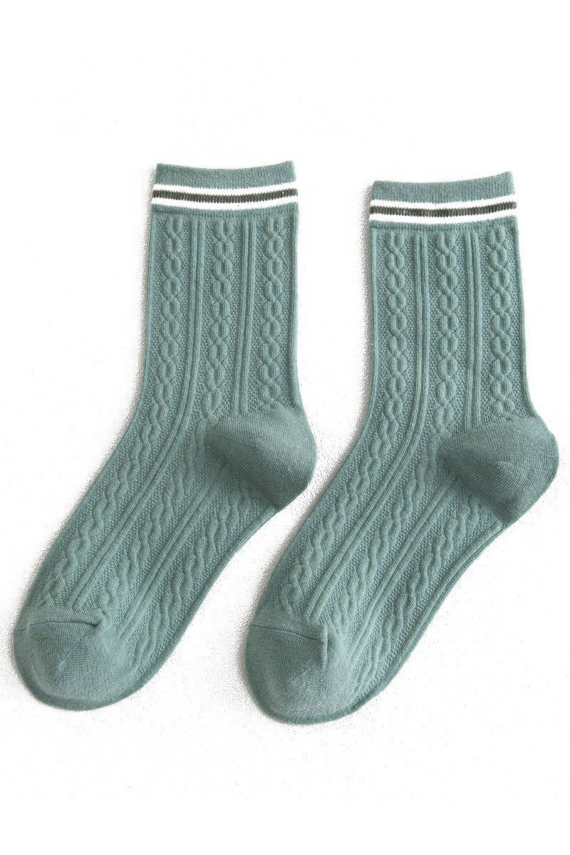Katoenmix Sokken met Kabelpatroon en Streepdetail