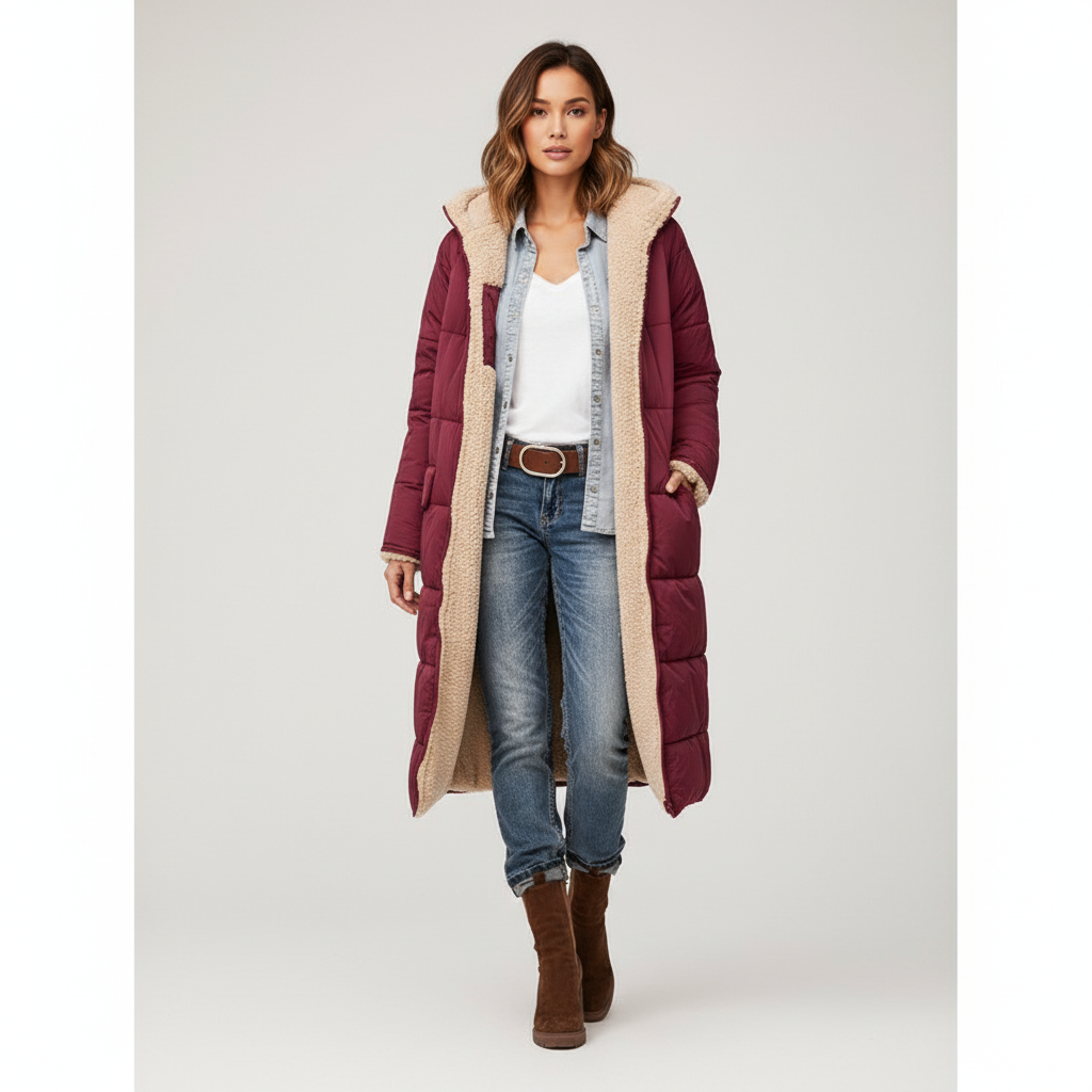 Dames Omkeerbare Winterjas – Dubbelzijdig Design met Flatterende Pasvorm