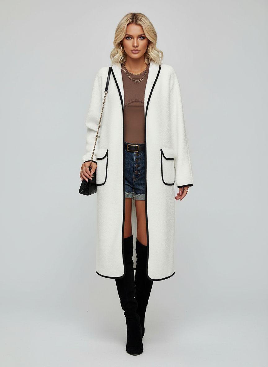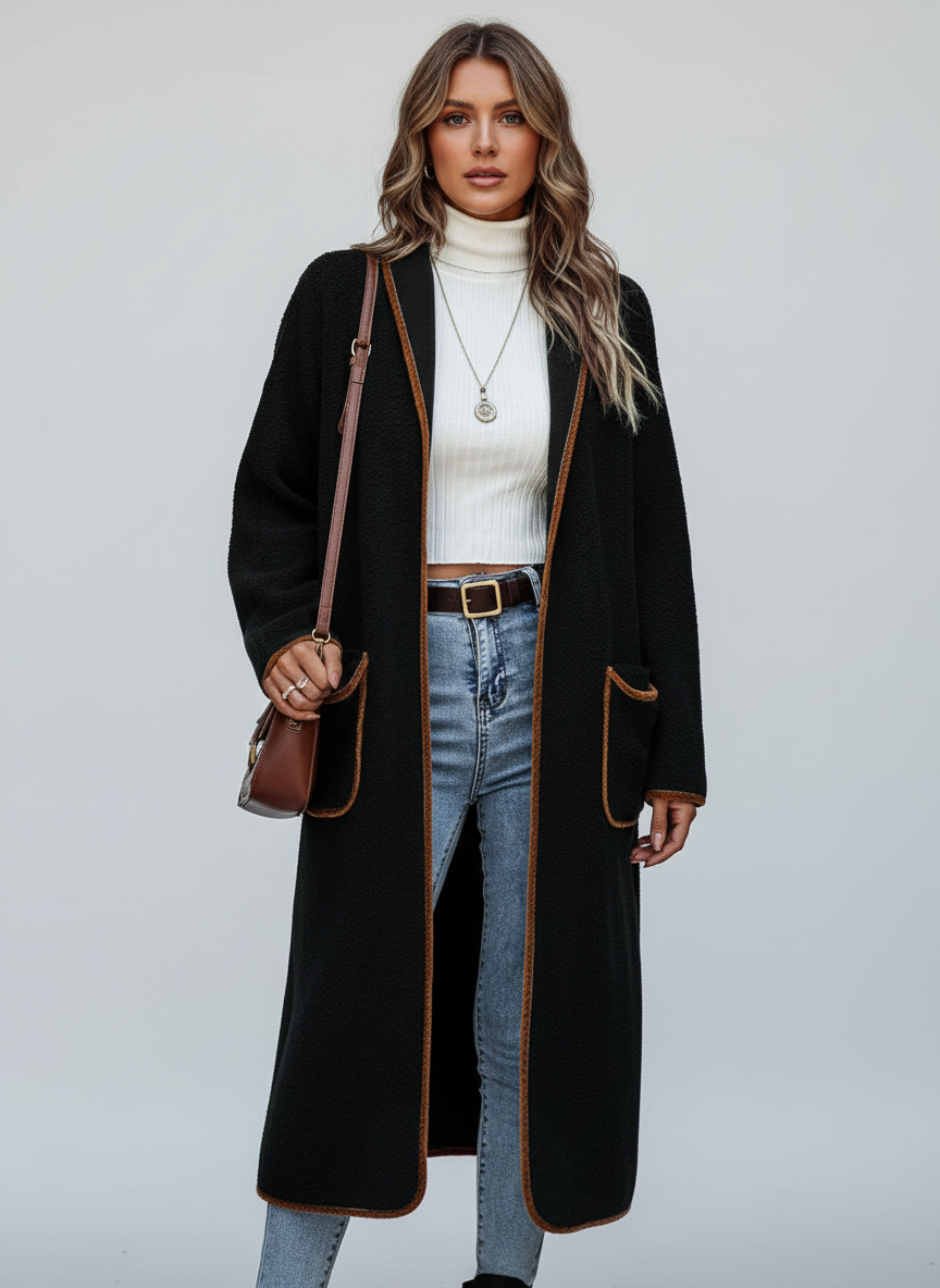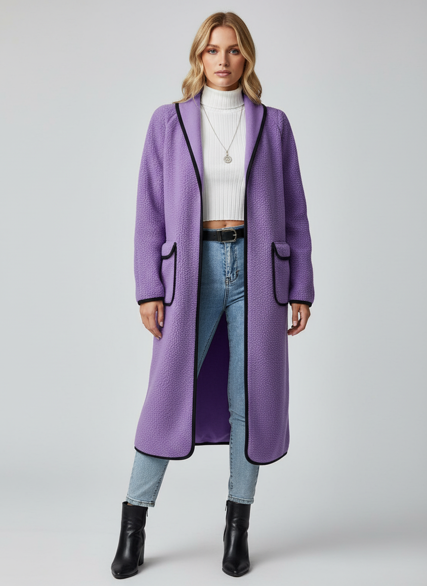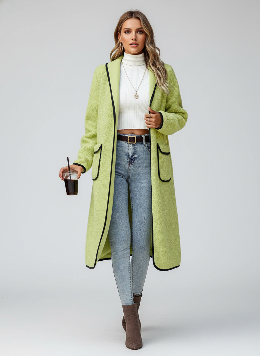 Lange Jas voor Dames met Contrasterende Rand