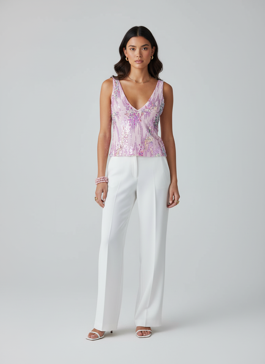Feestelijke Pailletten Dames Tanktop met V-hals