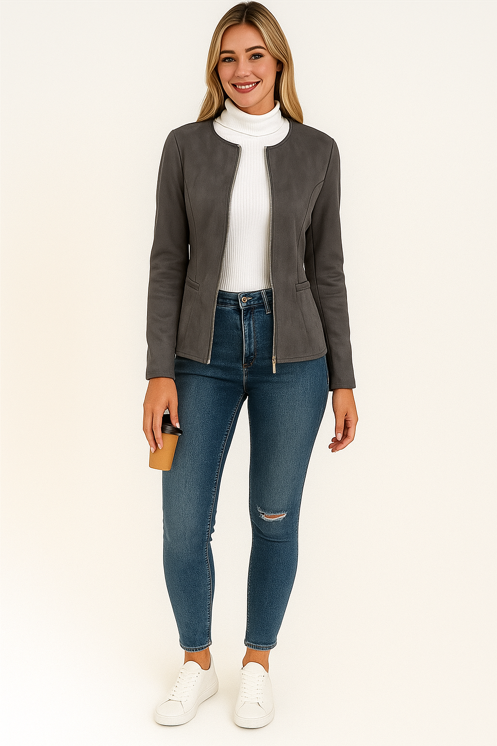 Grijs Dames Jack met Ronde Hals