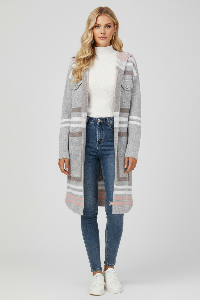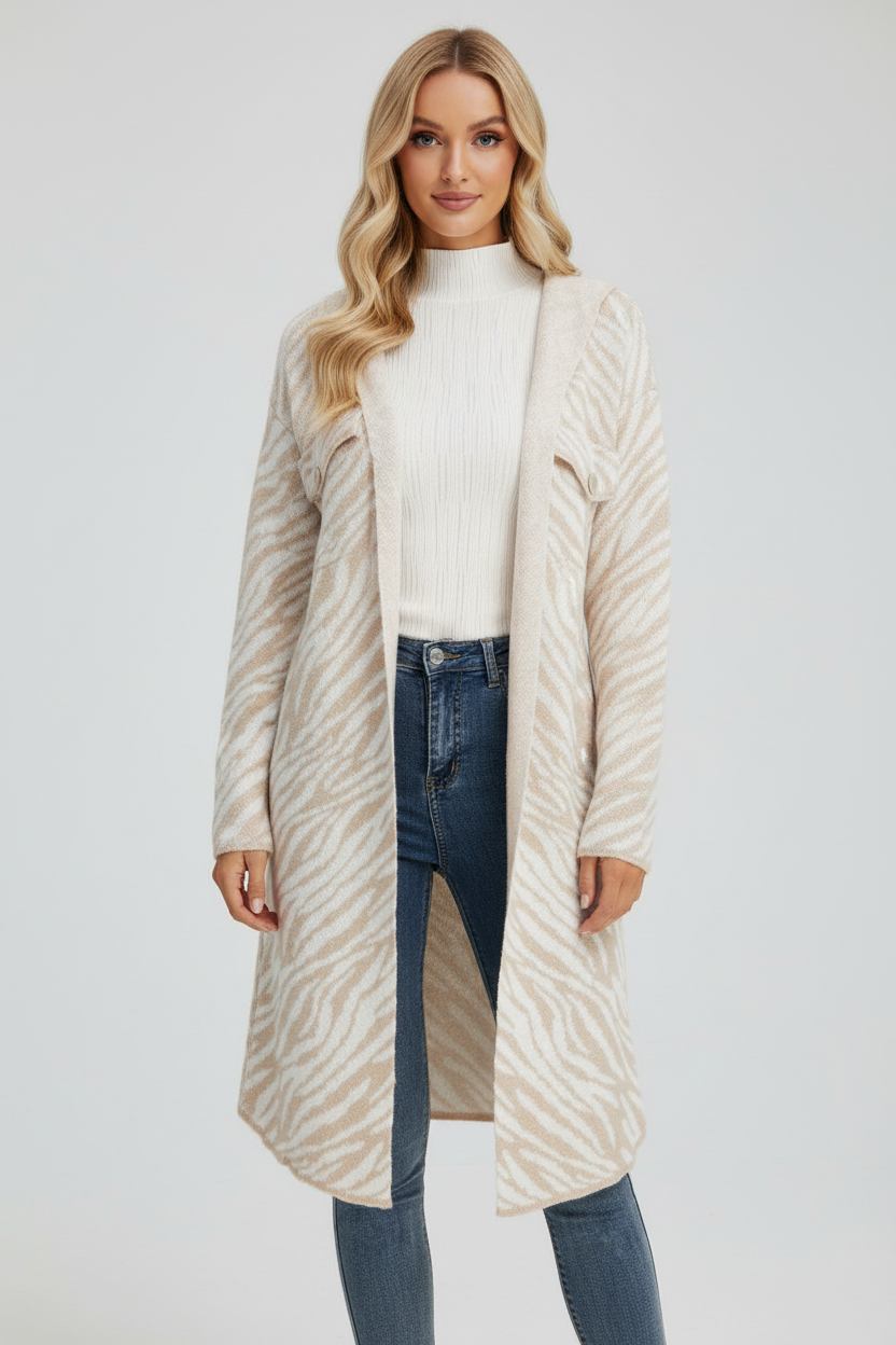 Laat je persoonlijkheid zien met dit unieke, gebreide vest van Dea Studios. Het vest is o.a. ontworpen met een opvallende zebraprint in de kleure beige, perfect om je casual chic look compleet te maken. De open voorkant en relaxte pasvorm zorgen voor ultiem draagcomfort, terwijl de capuchon een extra vleugje stijl toevoegt.