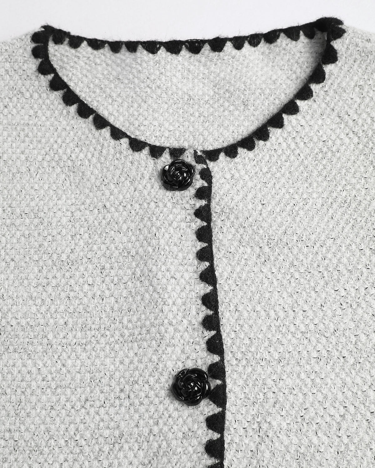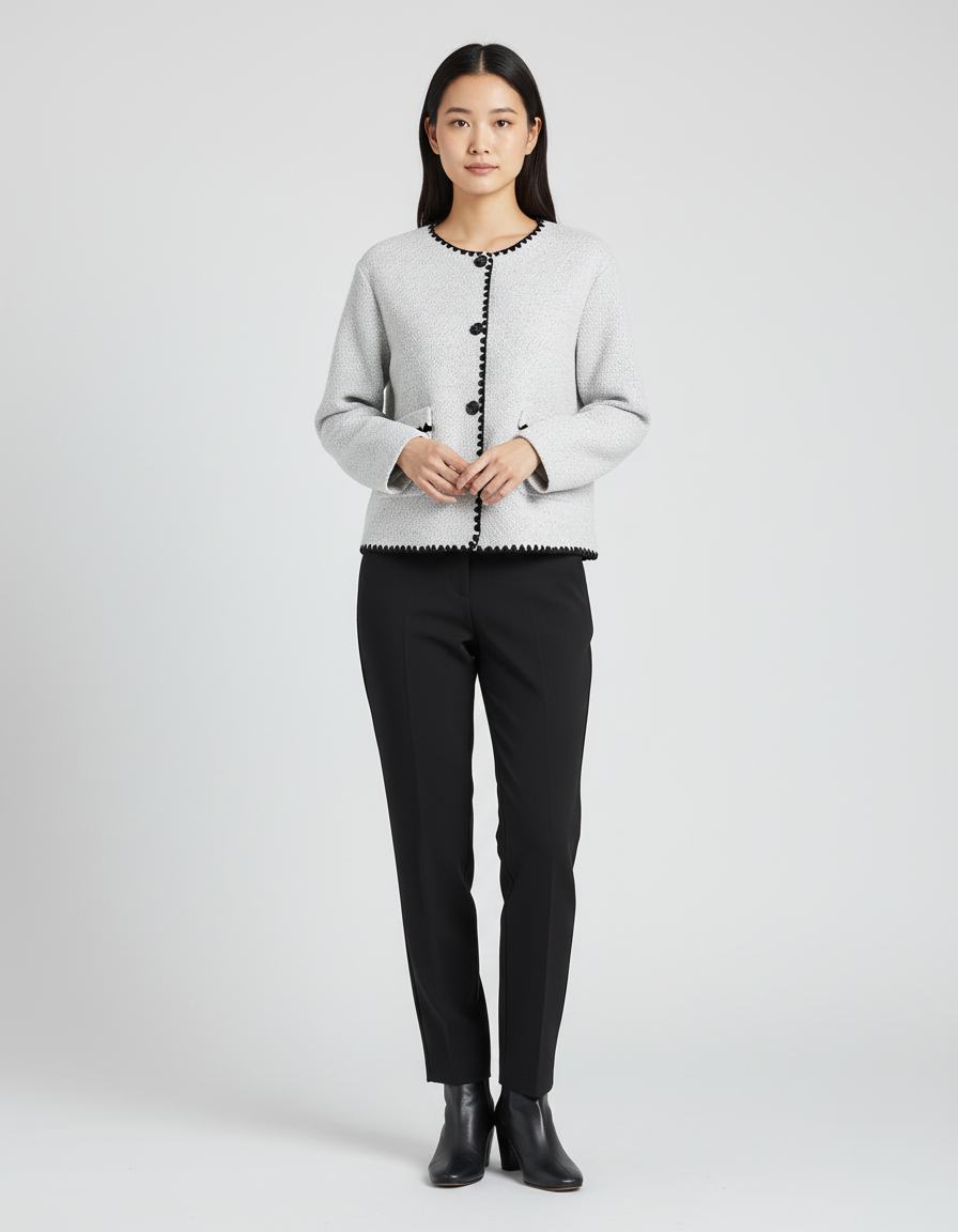 Tijdloos Grijs Gebreid Jasje met Contrasterende Rand