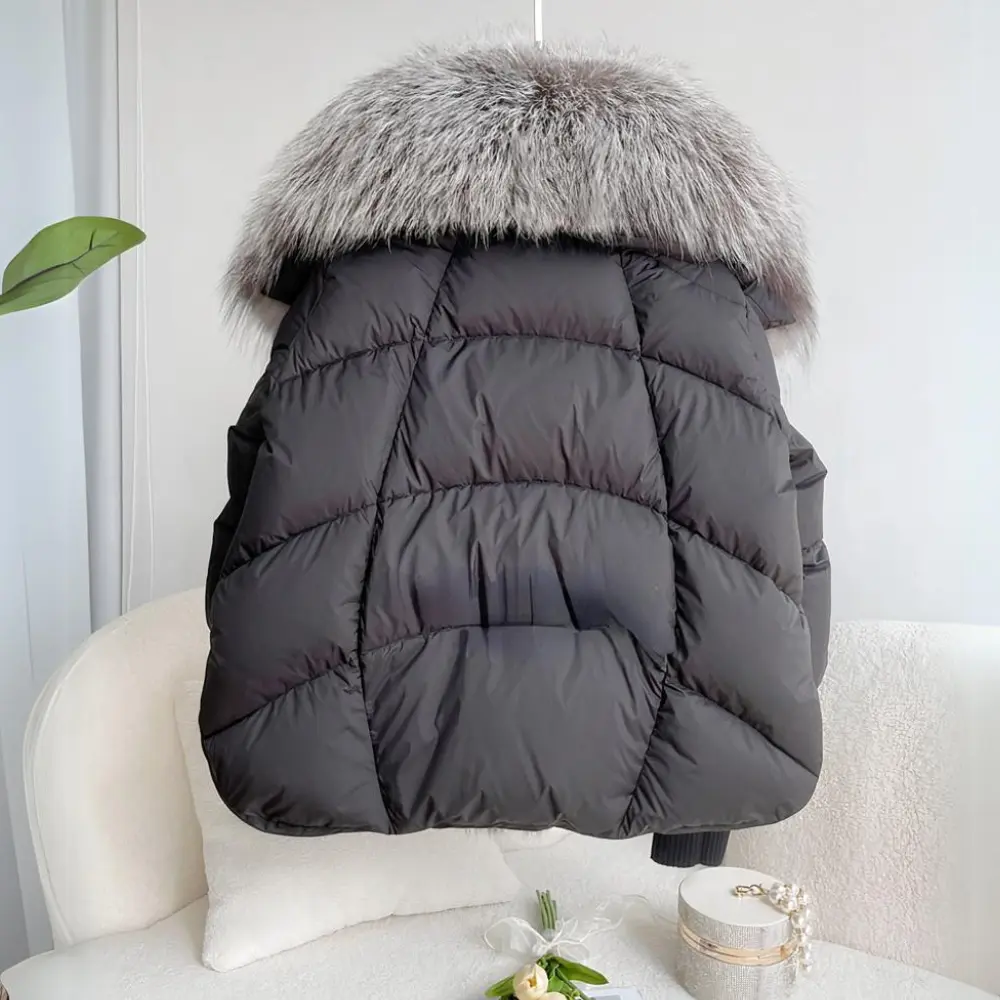 Dames Dons/Veren Puffer Jas met Faux Fur Kraag