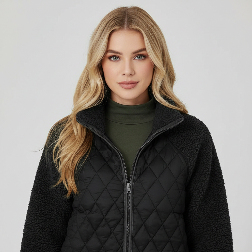 - Uniek design met gewatteerd voorpand en sherpa mouwen/kraag