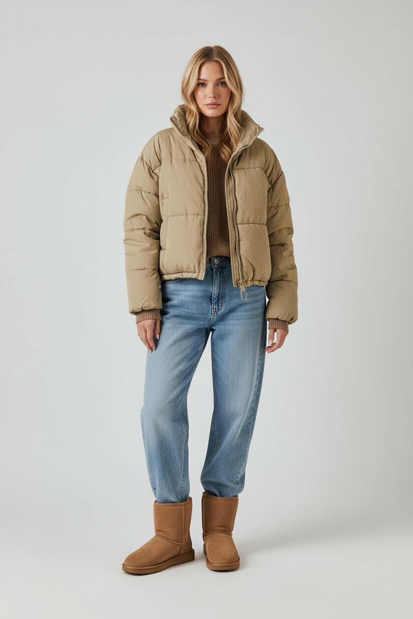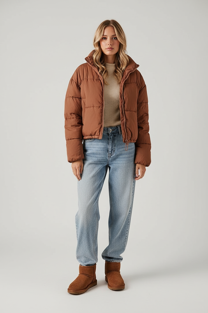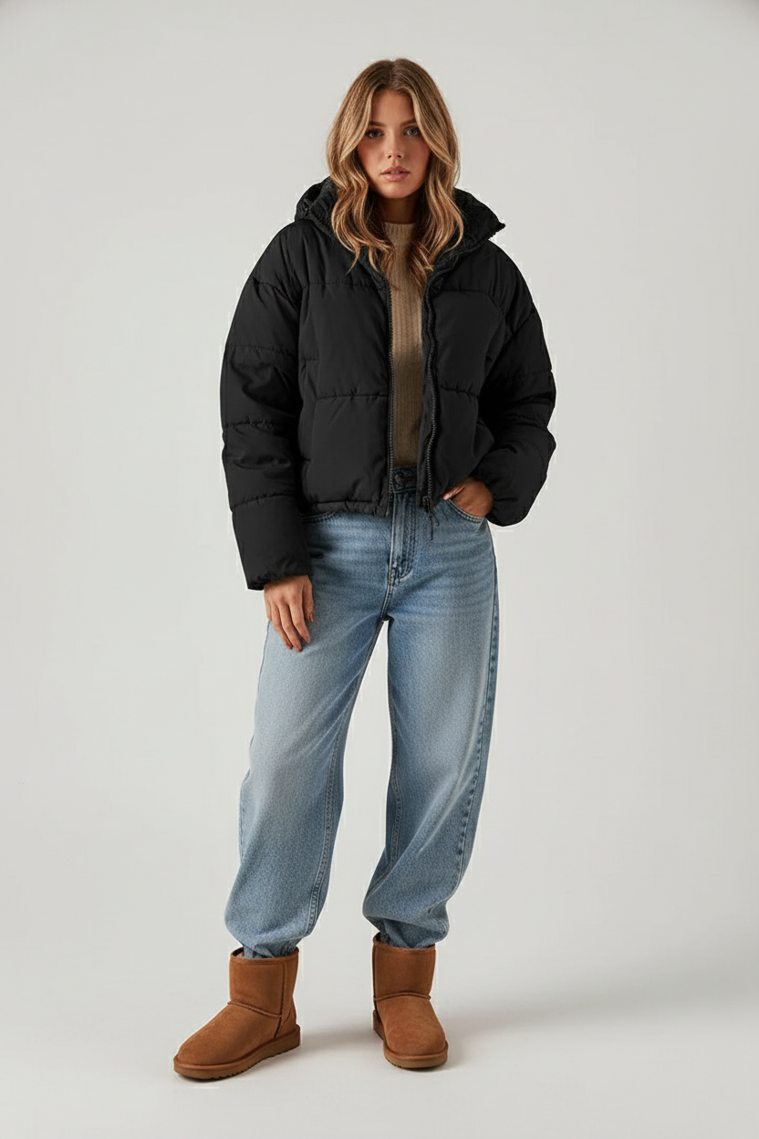 Deze korte dames pufferjas is de perfecte mix van warmte, comfort en moderne stijl. Ontworpen voor dagelijks gebruik tijdens koude dagen, biedt deze gewatteerde winterjas uitstekende isolatie zonder zwaar aan te voelen. De korte pasvorm geeft een trendy, sportieve uitstraling en laat zich moeiteloos combineren met jeans, truien of broeken voor uiteenlopende looks.