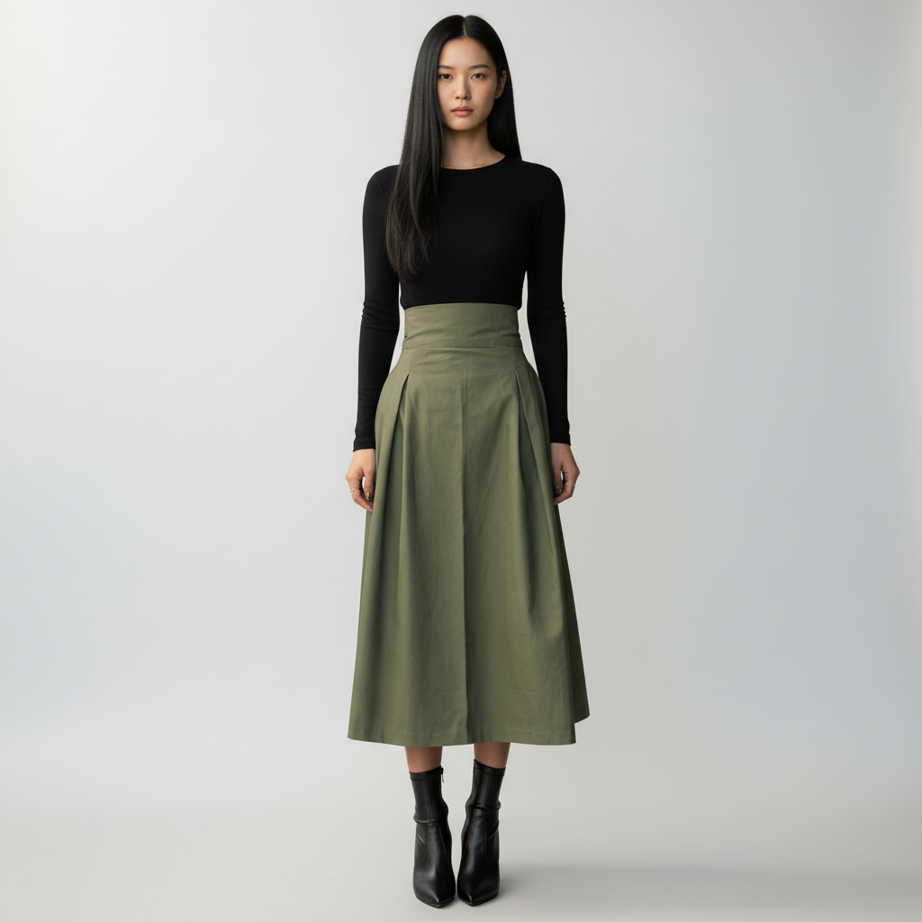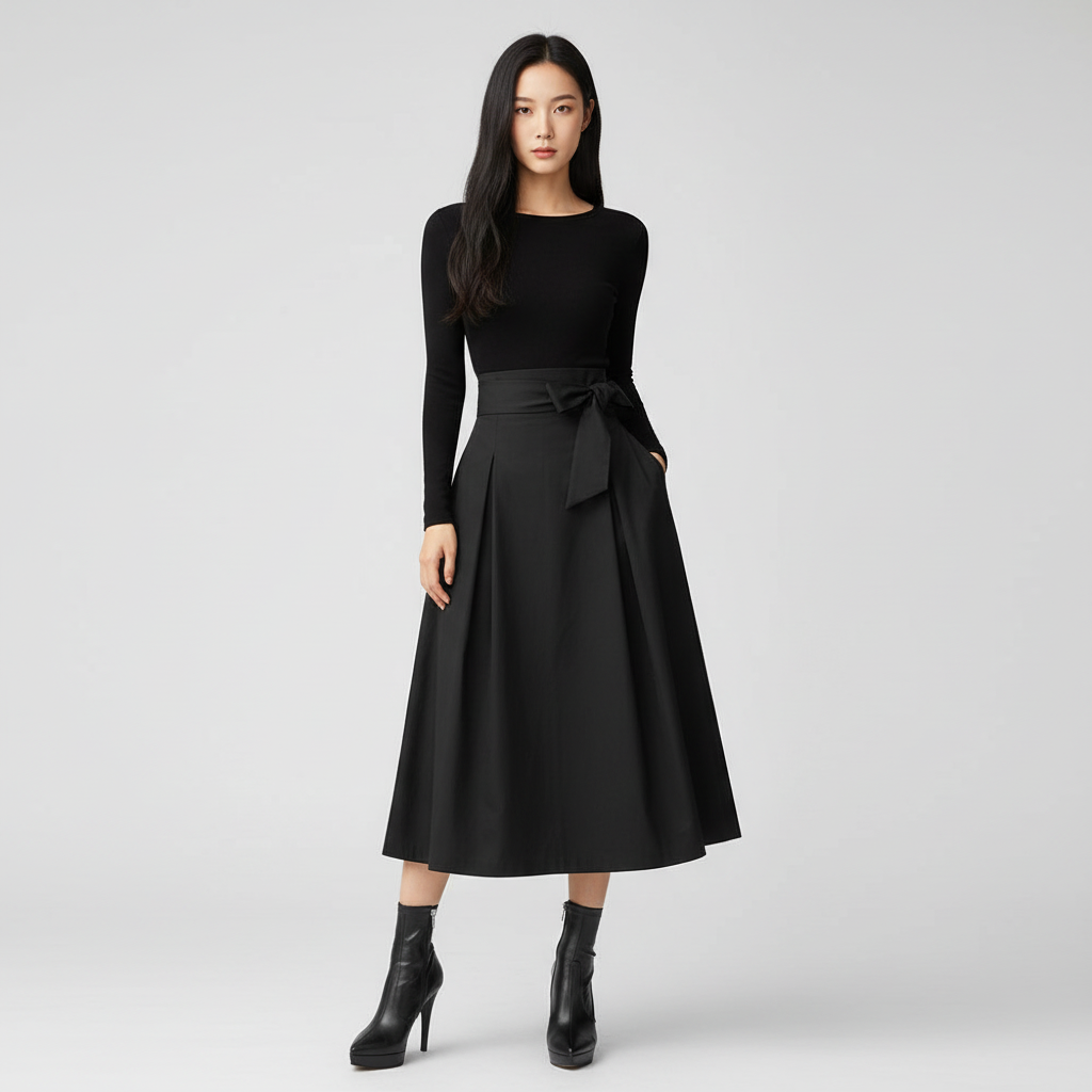 Voeg deze tijdloze midi-rok toe aan uw collectie en ervaar de perfecte balans tussen elegantie en praktisch gemak. Bestel vandaag nog en verrijk uw stijl met Dea Studios.