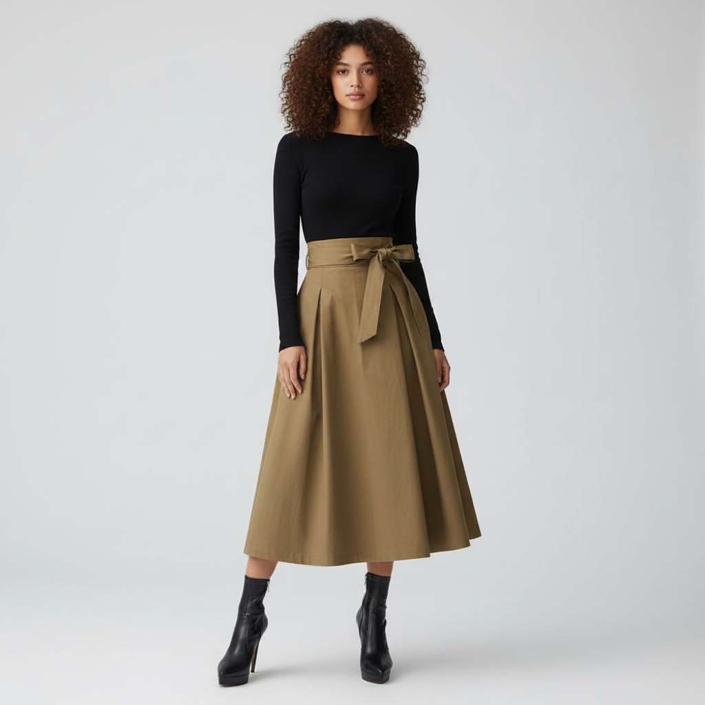 Katoenmix A-lijn Dames Rok met Strikceintuur