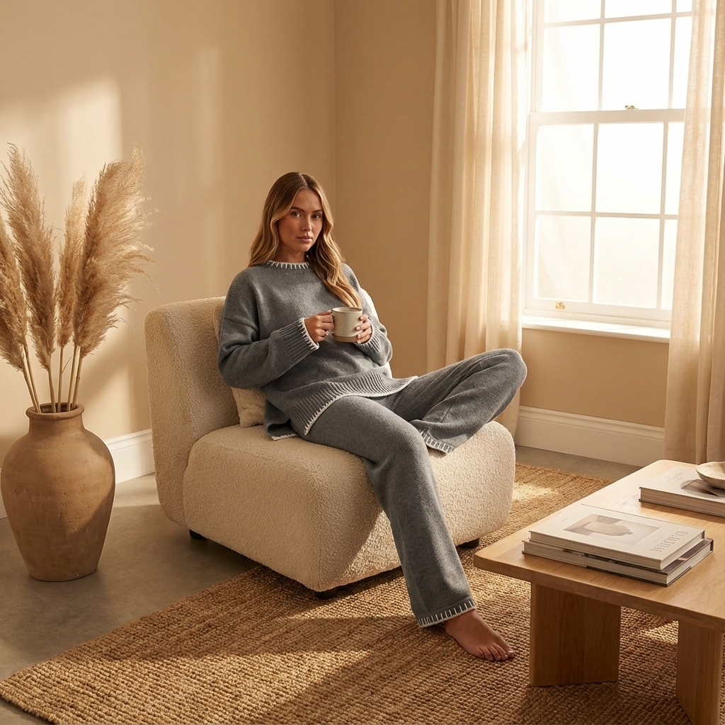 Zoek je een warme, comfortabele loungewear set dames die ook buitenshuis stijlvol oogt? De Zofia Comfort Set biedt cozy luxe en moderne eenvoud in één. Een favoriet voor de winter.