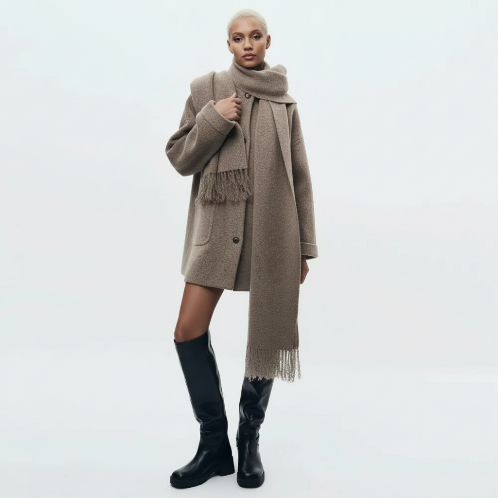 - Uniek, naadloos geïntegreerd sjaaldetail voor een gelaagde look