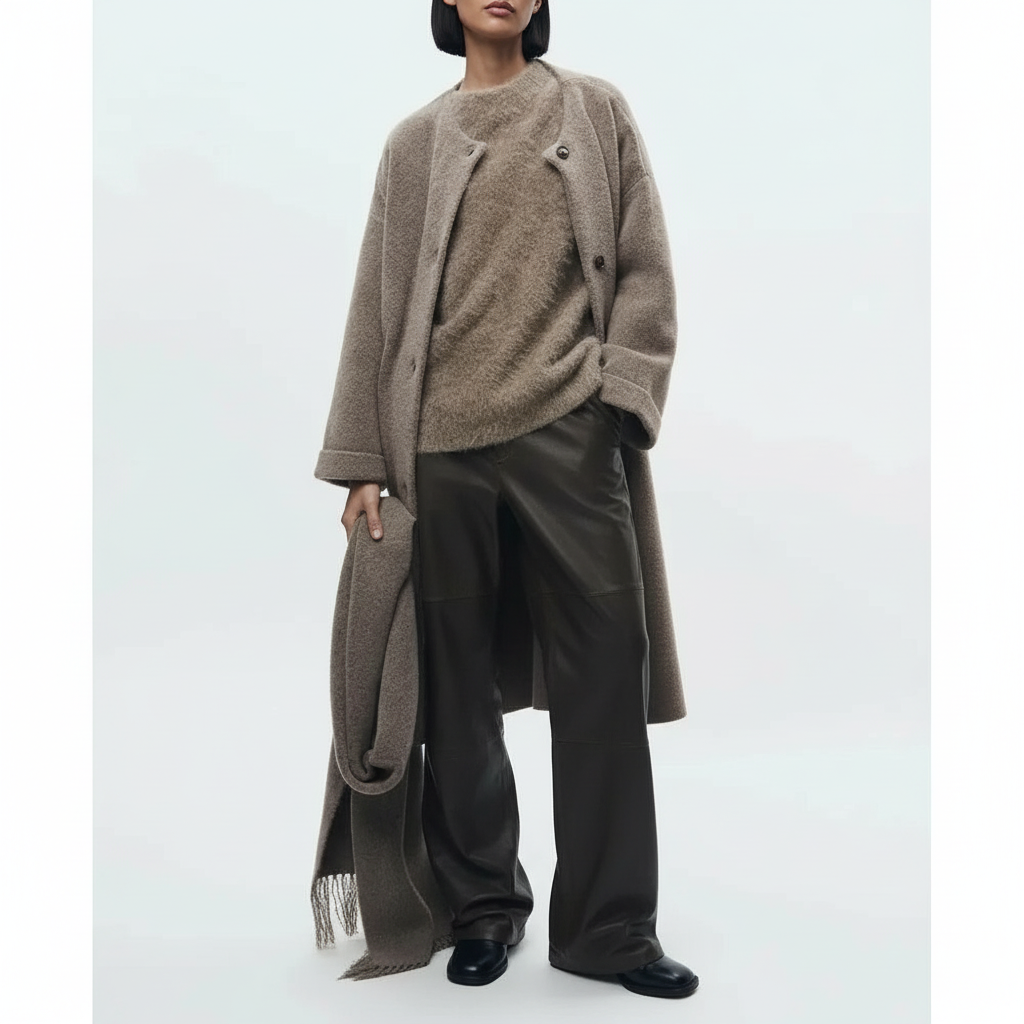 Stap in een wereld waar comfort en verfijning samenkomen. De Marguerite gebreide jas van Dea Studios is meer dan alleen een kledingstuk; het is een statement van moeiteloze luxe. Voel de omhelzing van de premium wolmix die zachtheid combineert met een luxueuze textuur. Het revolutionaire, geïntegreerde sjaalontwerp transformeert uw look direct, waardoor u zich gehuld voelt in warmte en stijl, ongeacht de bestemming. Deze jas is ontworpen voor de moderne vrouw die waarde hecht aan zowel esthetiek als functionaliteit, en die haar garderobe wil verheffen met stukken die blijven inspireren.