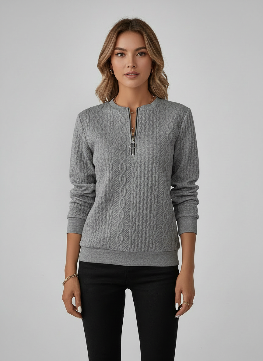 Dames Blend Trui met Kabelstructuur en Ritssluiting