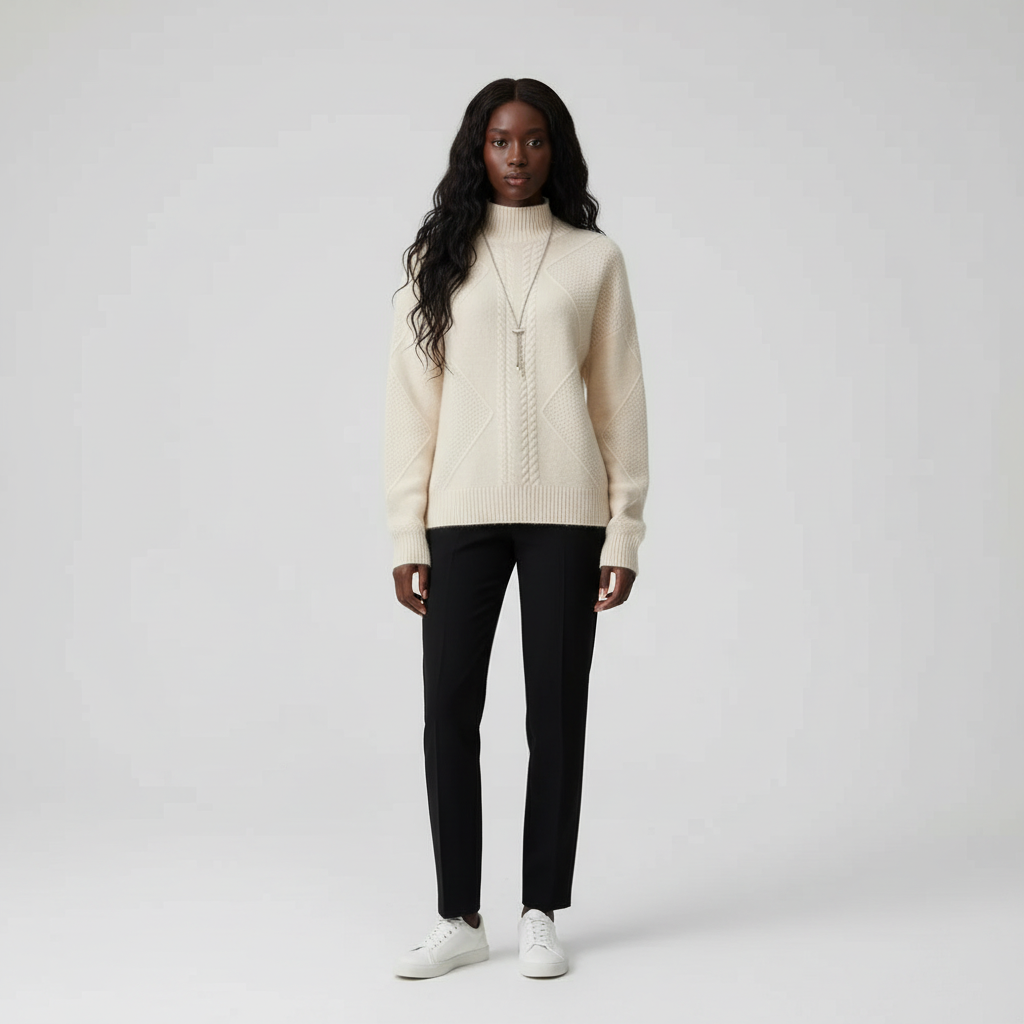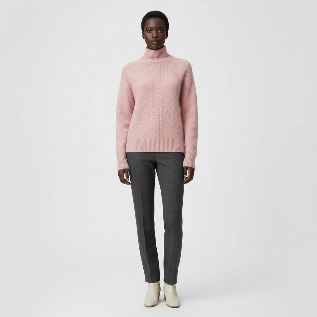 • Gedetailleerd kabel- en ruitpatroon voor een rijke textuur