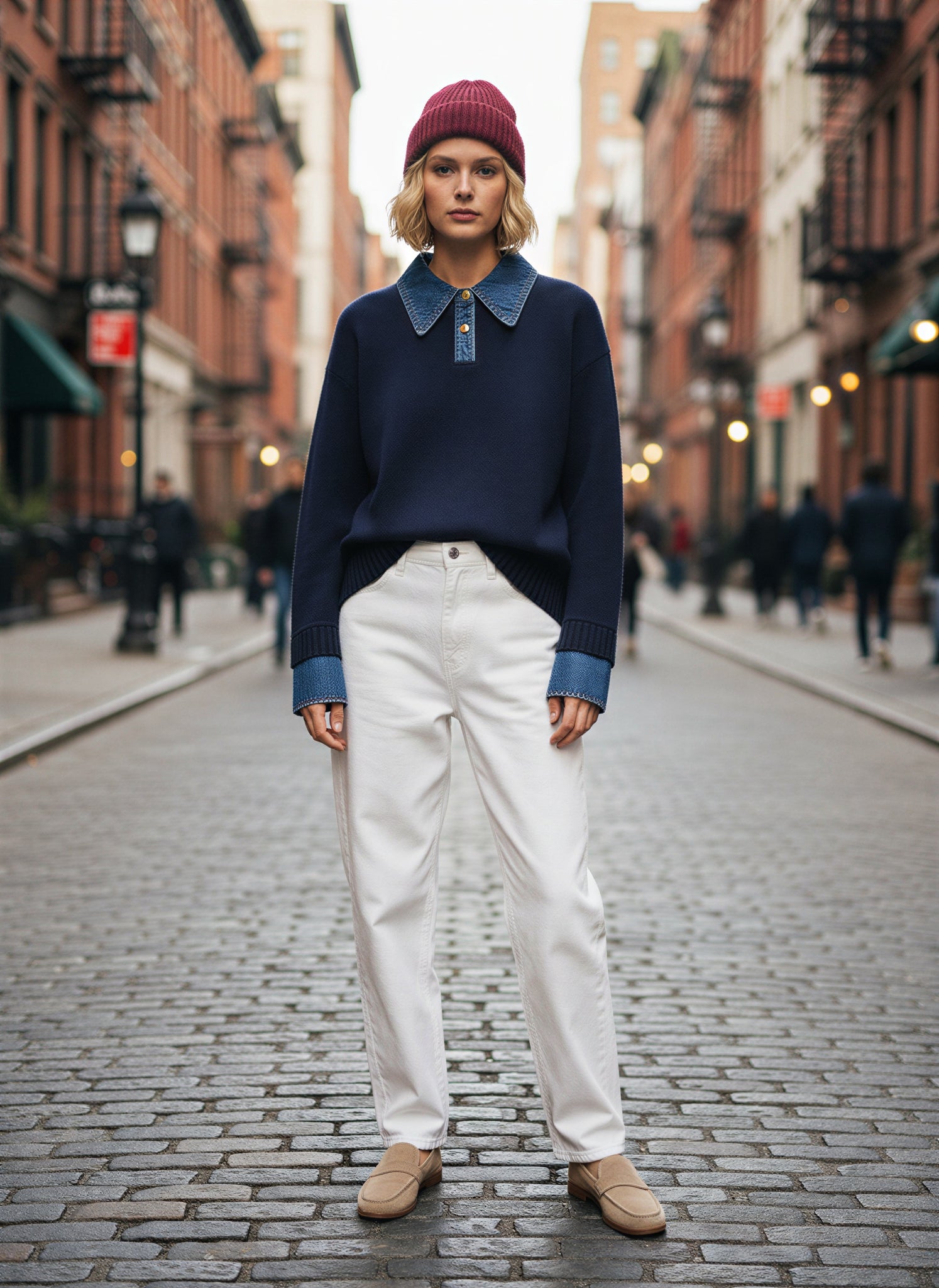 - Luxe trui met denim-look kraag en manchetten