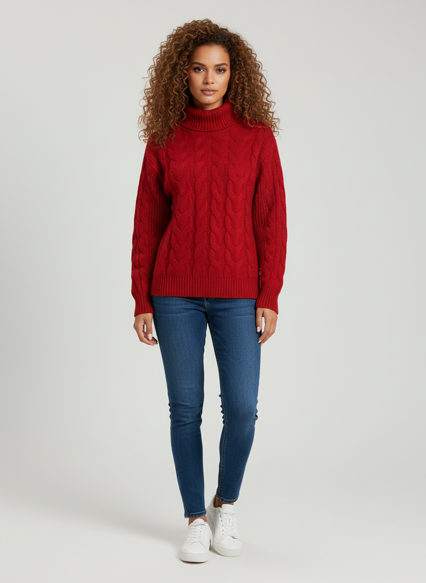 Gebreide Trui met Kabelpatroon voor Dames – Warme Comfortabele Knit Sweater
