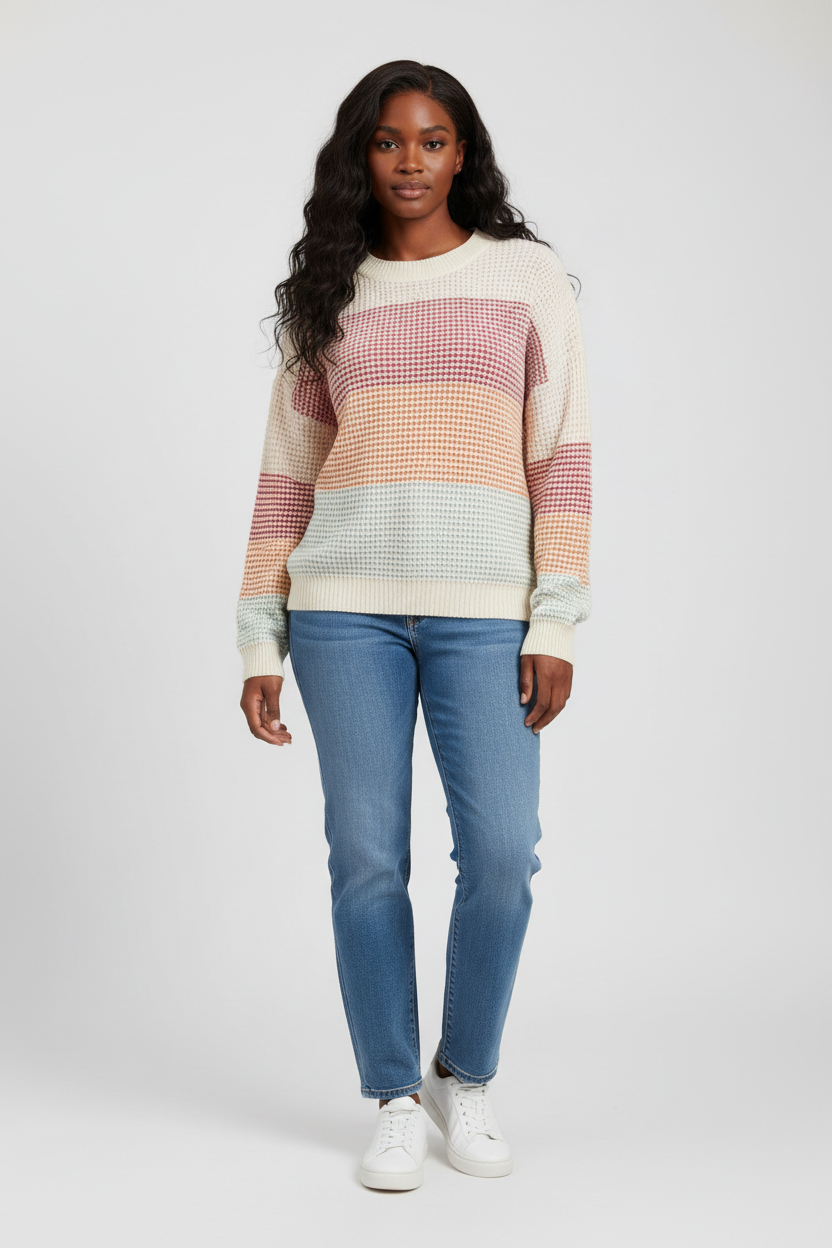 Gebreide Dames Trui met Kleurblokken en Wafelstructuur