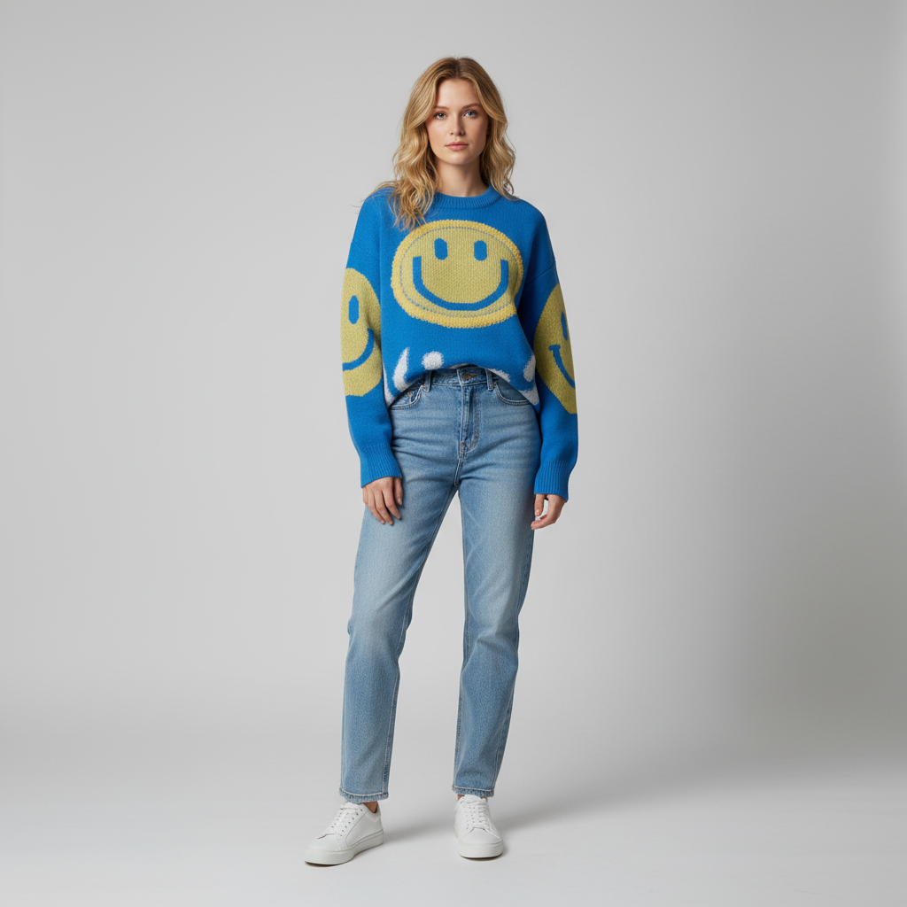Gebreide Trui met Smiley voor Dames – Zachte Warme Knit Sweater met Smiley-Design