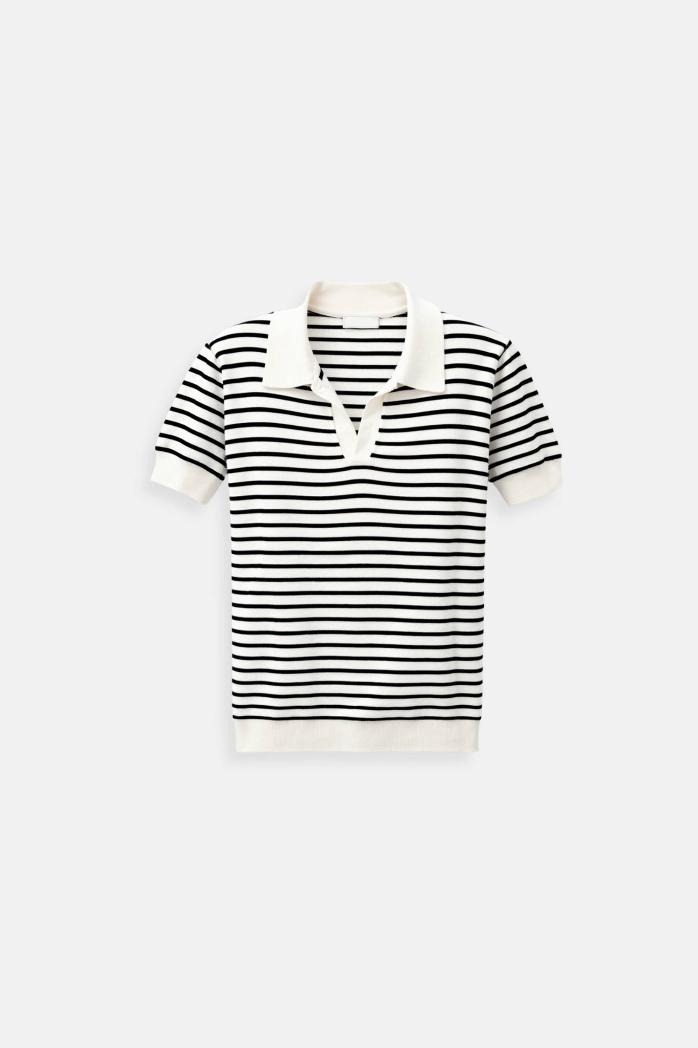 Dames Gebreide Polo met Streep - Tijdloze Zwart-Wit Casual Top