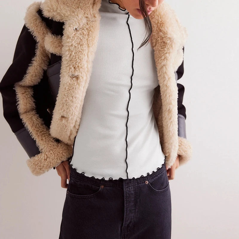 Deze moderne top is een ware eyecatcher dankzij de gedurfde contraststiksels die de naden accentueren en een uniek, seam-focused design creëren. Het aansluitende model flatteert het figuur en is ideaal om te dragen als opvallende basislaag of als statement piece op zichzelf.