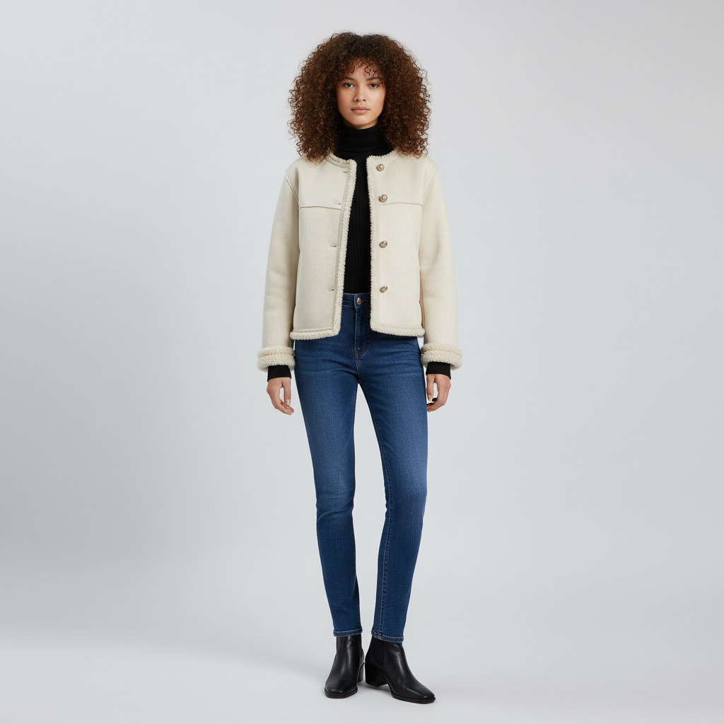 - Zachte Shearling Voering: Geniet van de ultieme warmte en luxe dankzij de crème-kleurige shearling voering die zacht aanvoelt op de huid.