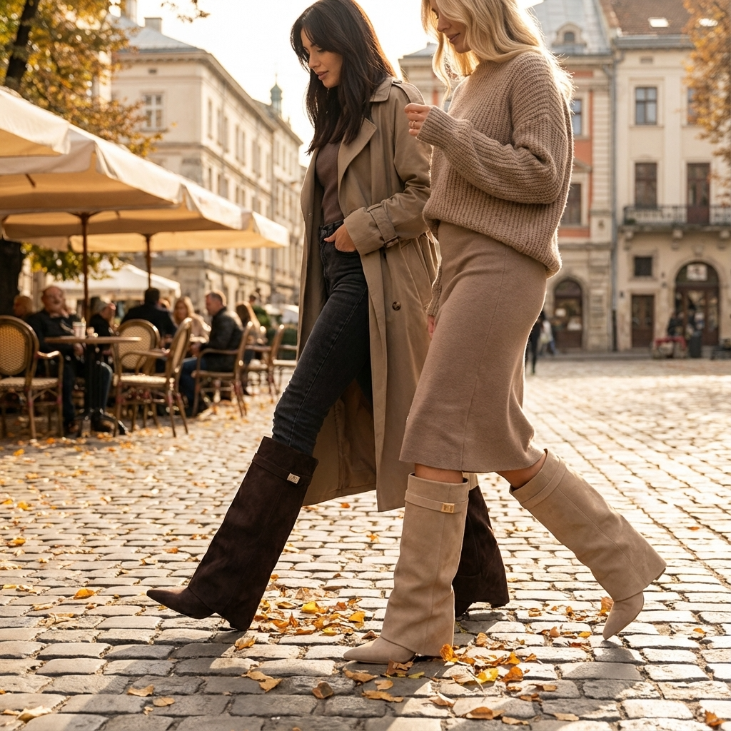 Suede Slouch Dames Laarzen – Trendy Hoge Laarzen